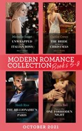 Modern Romance October 2021 Books 5-8: Unwrapped by Her Italian Boss (Christmas with a Billionaire) / The Bride He Stole for Christmas / The Billionaire's Proposition in Paris / Pregnant After One For